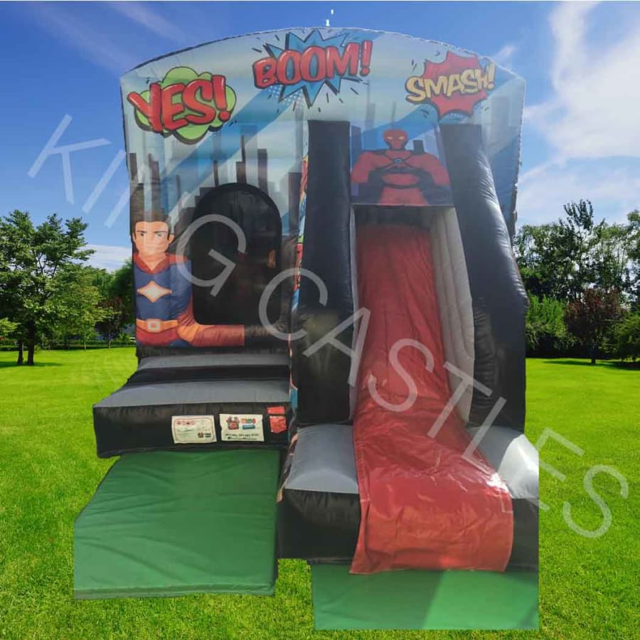 If you have a superman and superwoman in your house then you have made the right stop to bring the superpersons dream a reality. The superhero bouncy castle and slide measures 16ft(L) X 11ft(W). Let them bounce the day away surrounded by all of the superhero and superwomen along with marvel heros. This bouncy castle and slide also has a 4.5ft slide which adds to the excitement of the day.