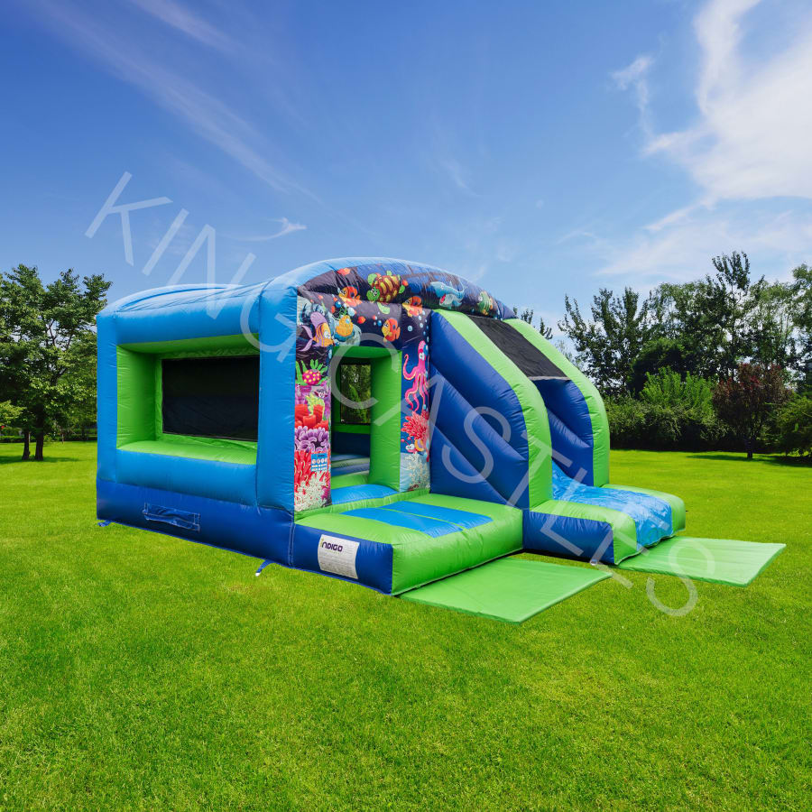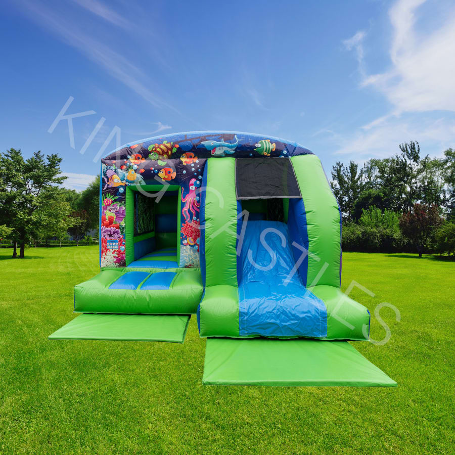The Under The Sea Bouncy Castle & Slide is 18ft(L) X 12ft(W). If you have any Ariel or Nemo fans in your house, this is the perfect bouncy castle for their upcoming celebration. Bounce the day away under the waves surrounded by colourful fish, turtles and other fun sea creatures. Perfect for birthday parties, communions and all get togethers, this castle will make little boys and girls excited to explore the world under the sea.