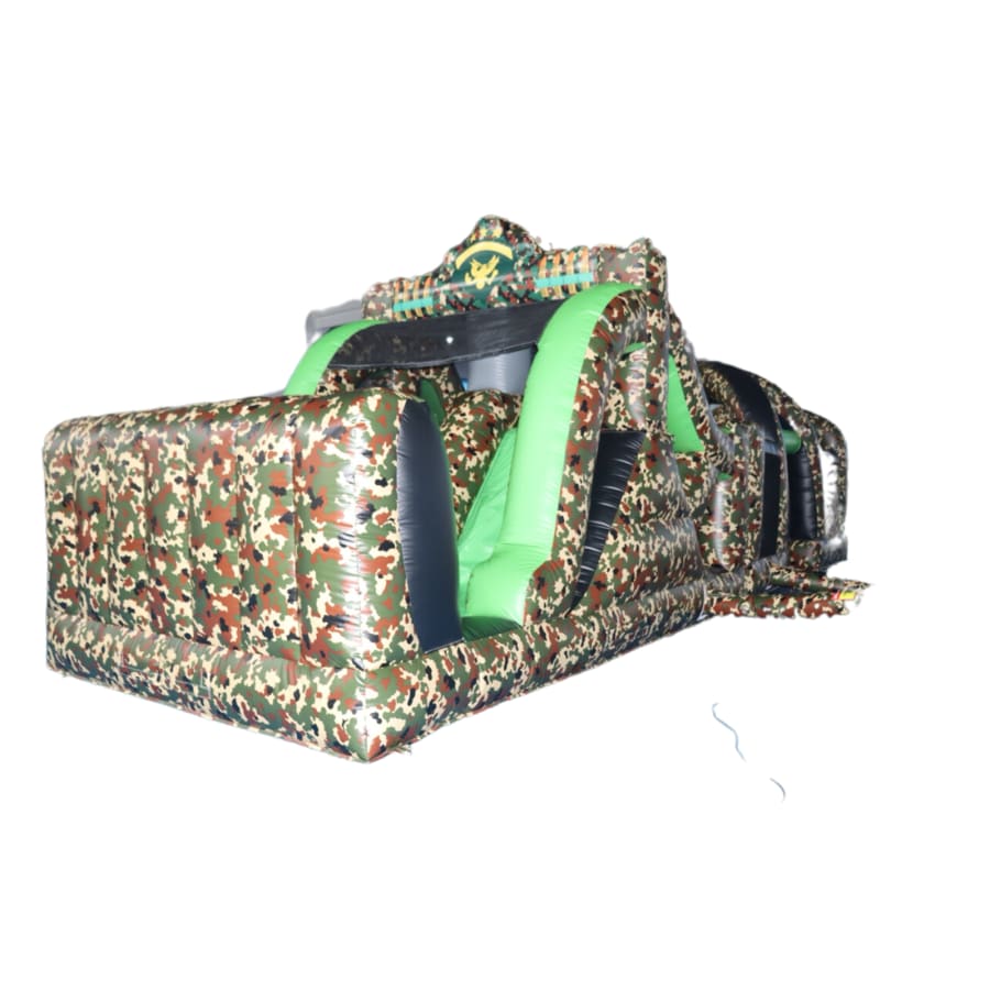 The 40ft Army Camouflage Obstacle Course delivers a compact, action-packed experience. This 40ft Army Camouflage Obstacle Course features a tactical layout and a slide exit. It’s built for kids, teens, and adults who want fast-paced fun and team challenges.