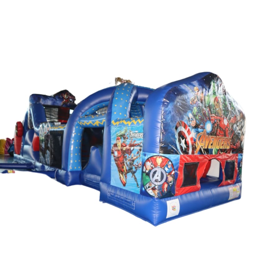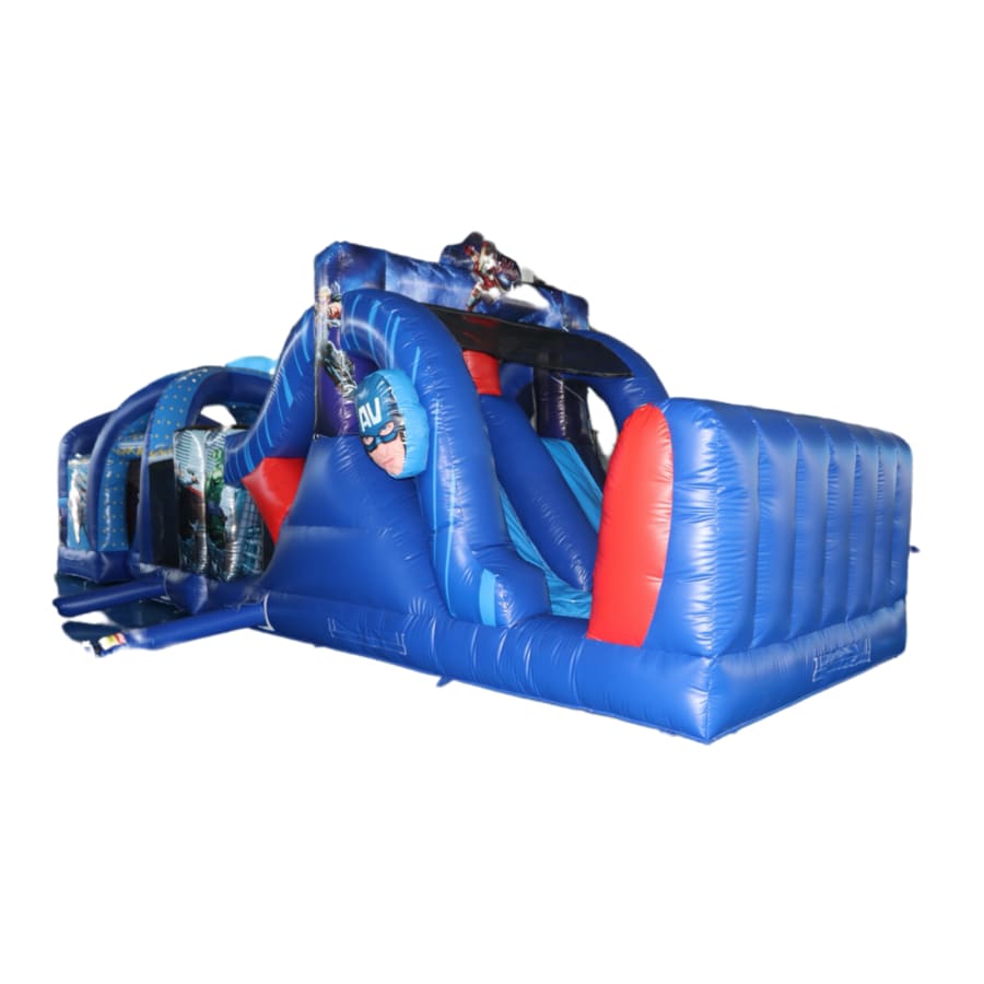 The 40ft Avengers Obstacle Course delivers a compact, action-packed experience. This 40ft Avengers Obstacle Course features a tactical layout and a slide exit. It’s built for kids, teens, and adults who want fast-paced fun and team challenges.