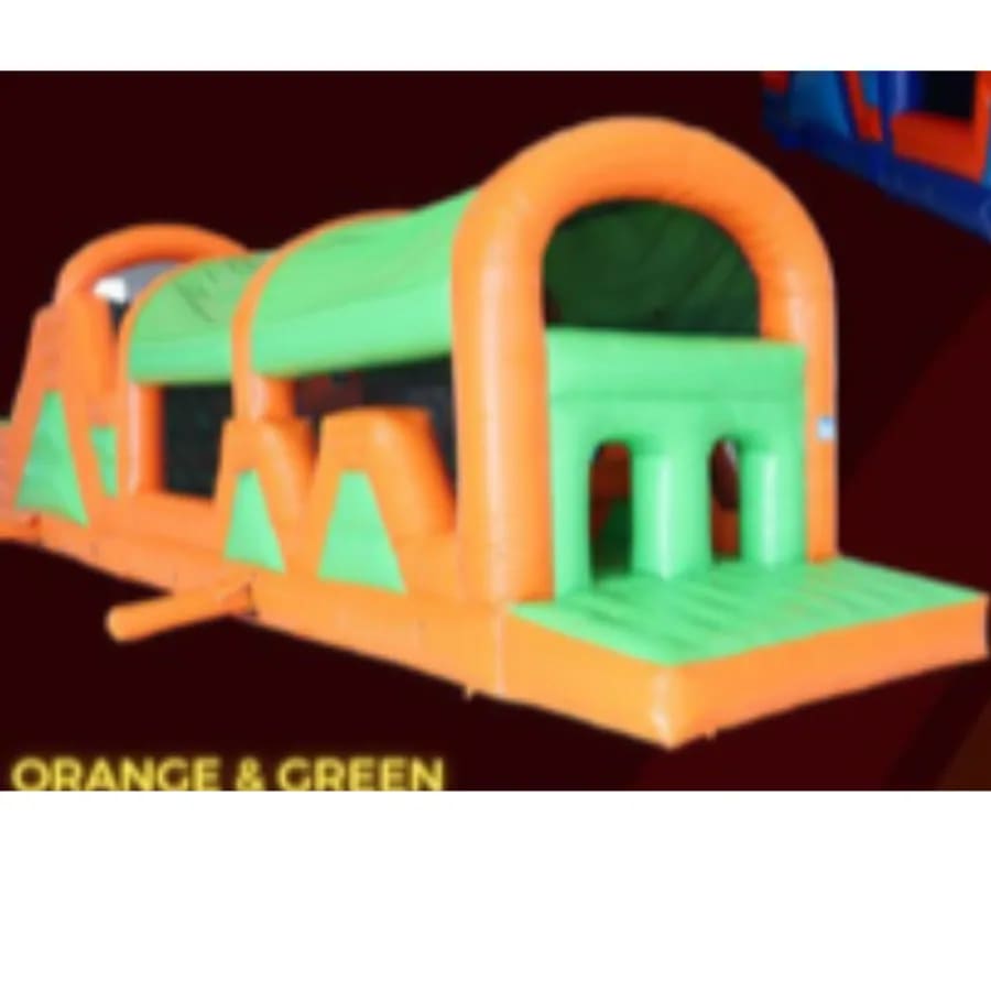 Unleash the Fun with our 45ft Orange and Green Booster Obstacle Course